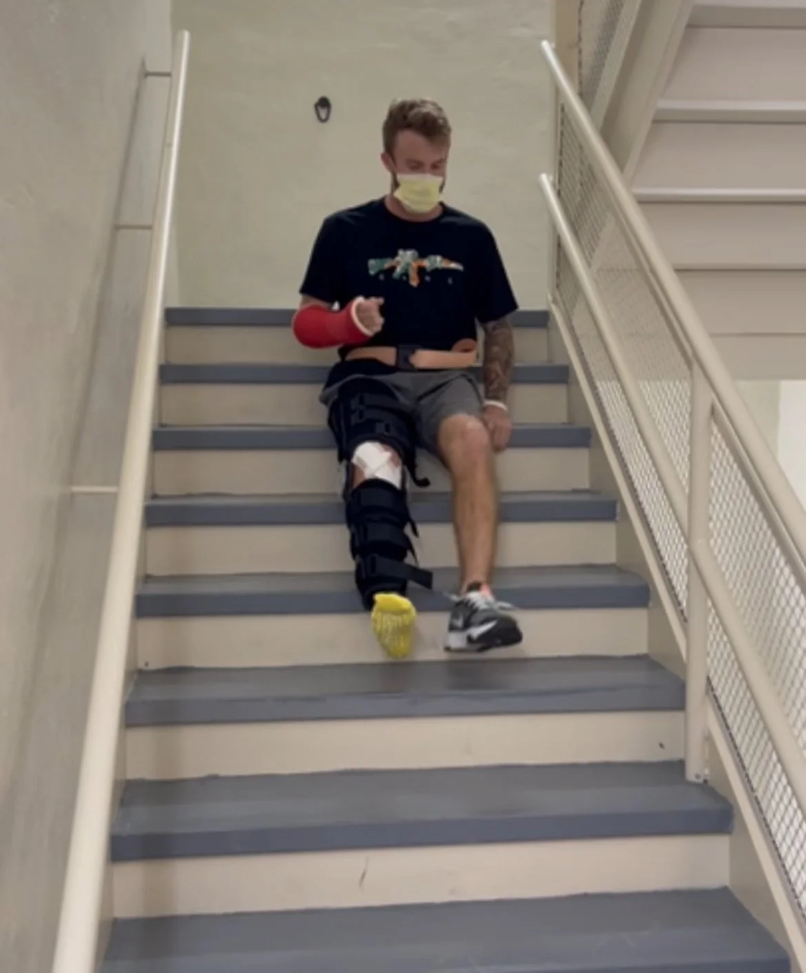 He experienced significant muscle atrophy in his broken leg.